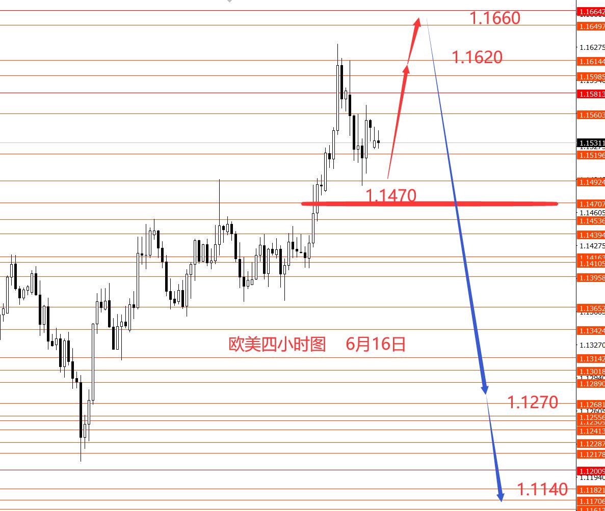 上周欧元分析错误,欧元实际走势向上破位,最高1.1620.从图形来看,我还是要坚持月初的观点,也就是说欧元高位震荡盘整行情还未结束,只是月初不确定是1.1520还是1.1660,极限1.1710。所以本周谨慎做多,随时留意欧元向下行情出现,波段目标仍是1.1140区域,只不过还是不能确定顶部转折点位置。周初重点关注1.1470区域强支撑,以上短线看涨,上方关注1.1660区域强阻力,留意大反转行情出现。